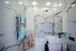 Кухня с бытовой техникой (холодильник, микроволновая печь, посудомоечная машина, посуда)
