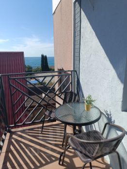 Море через дорогу, дом стоит чуть на возвышенности-в гору идти не надо. В пешей доступности магазины, кафе, жд станция.