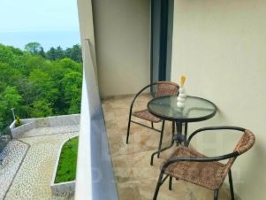 В квартире площадью 45м2 есть кухня и две раздельные комнаты с панорамным остеклением с выходом на просторный балкон, откуда открывается великолепный вид на море.