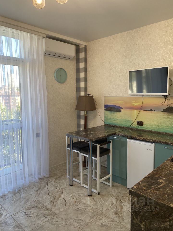 В квартире сделан косметический ремонт, поэтому она выглядит свежо и ухоженно. Пространство организовано с учетом всех потребностей: в комнате есть необходимая мебель, установлен кондиционер, холодильник, телевизор и стиральная машина.