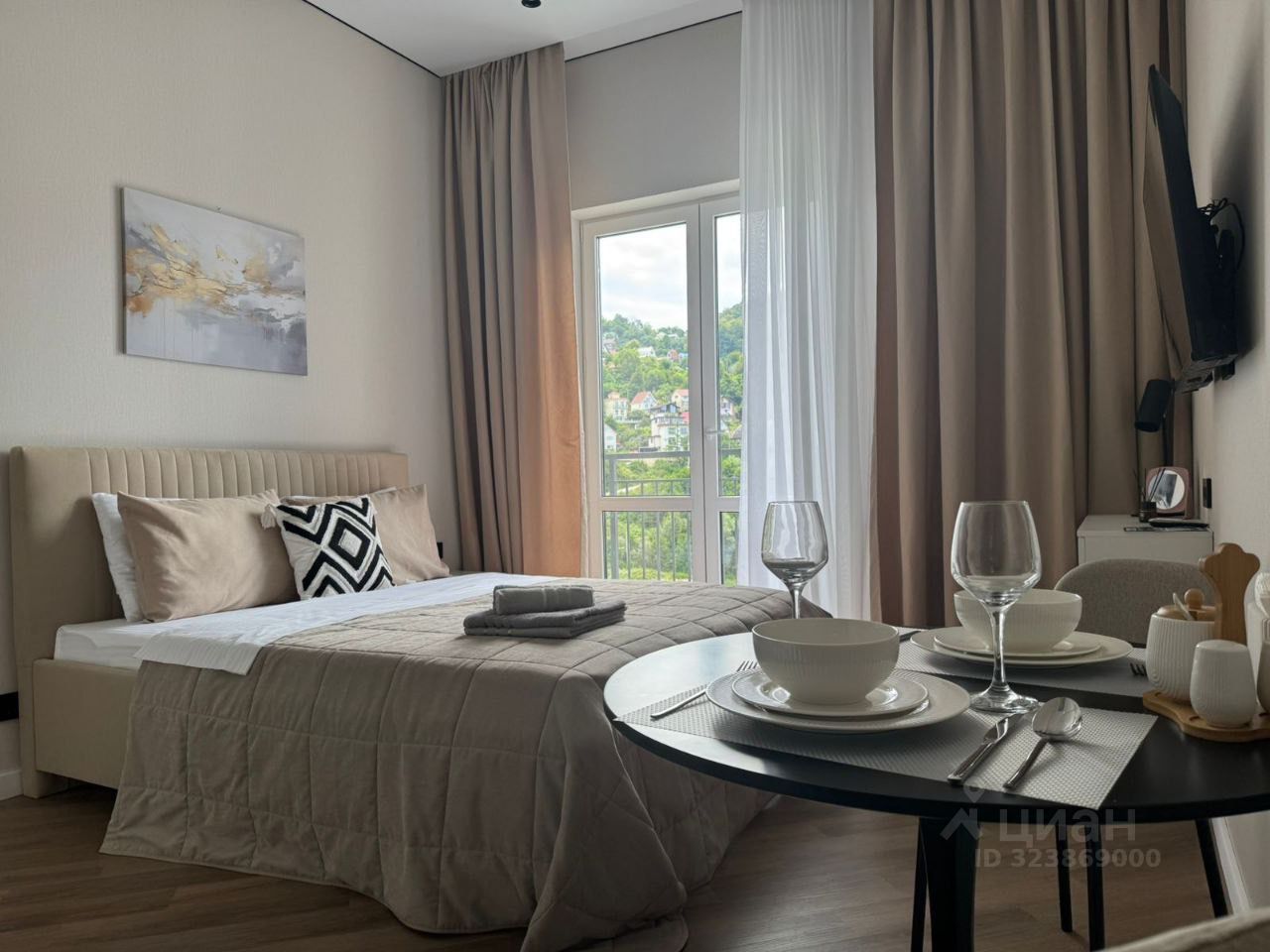 •С балкона живописный вид на гору , собственную набережную и двор с детской площадкой