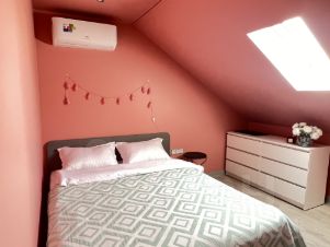 Двуспальный диван на первом этаже и комфортная двуспальная кровать на мансарде. При желании можно добавить одно спальное место на втором уровне