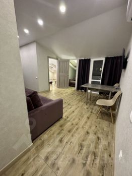 Внутри спальня с двуспальной кроватью , гостиная-кухня с раскладным двуспальным диваном и раскладное кресло, также прихожая, совмещенный санузел, балкон.