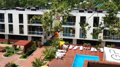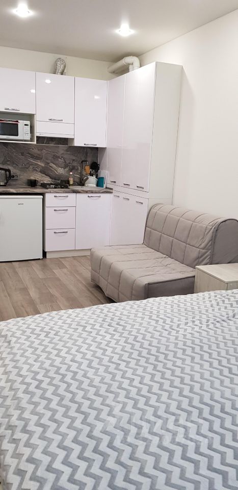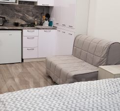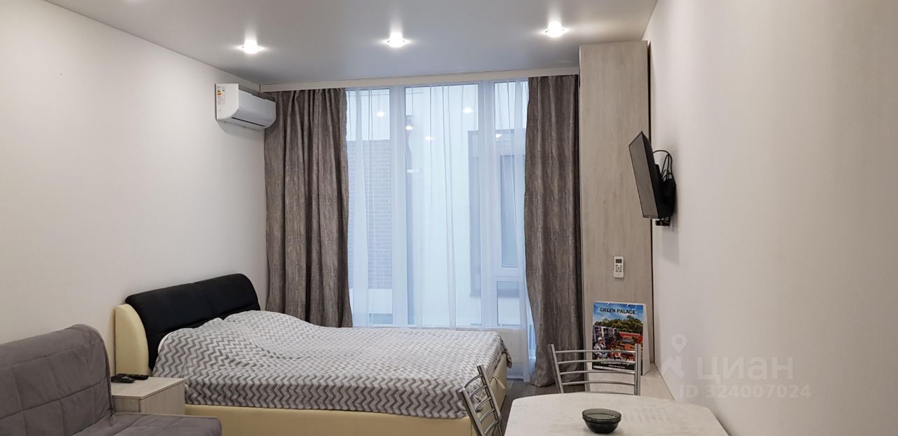 Квартира-студия в шикарном комплексе бизнес класса "Грин пэлас". 26 кв.м. В квартире есть мебель, техника, интернет. На территории детская и спортивная площадки, зона отдыха, шезлонги и бассейны, в том числе круглогодичный с подогревом. Жить здесь-одно удовольствие). Расположение: район Соболевка, от моря 5-7 минут на такси, 10 минут на автобусе, 25 мин -пешком.