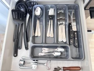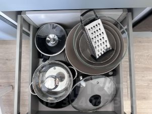 Кухня со всем необходимым, в том числе посуда для приготовления пищи и сервировки