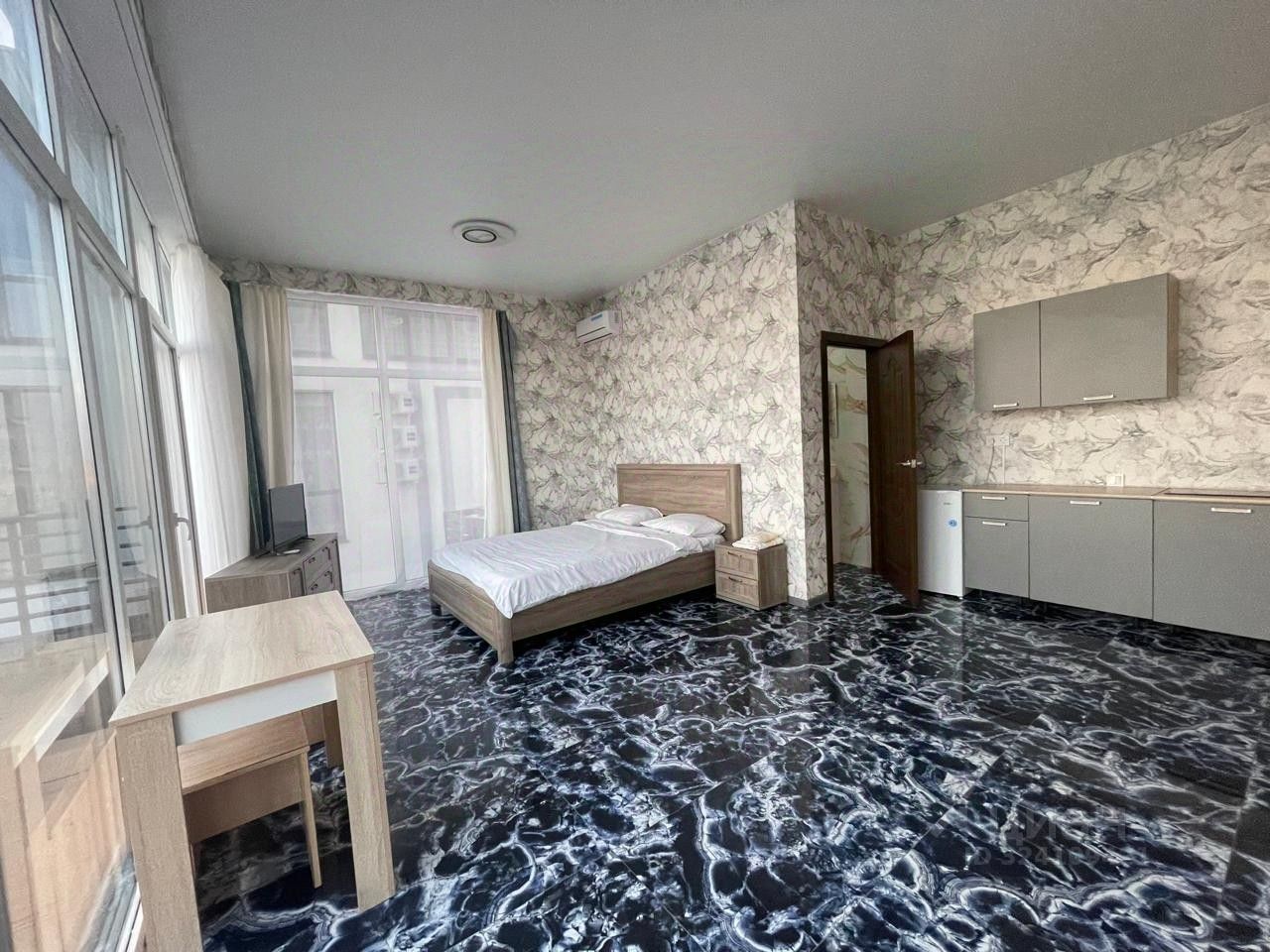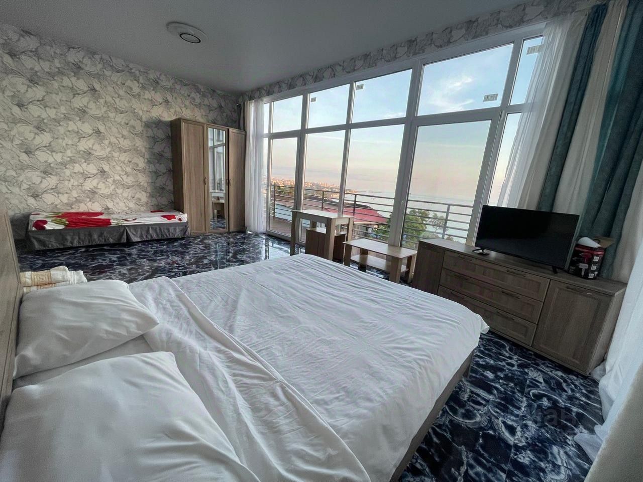 уютная студия с потресаюшим видом на море и город, есть все необходимое для проживания, до остоновки обшественного транспорта 7мин пешком, до пляжа КУБА 15мин пешком ( ПРИЗНАН ЛУТШИМ ПЛЯЖЕМ ) тамже жд станцыя откуда без пробок можно добираться на ласточке до олимпийского парка или красной поляны, или до жд вокзала