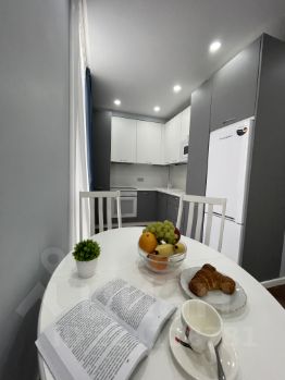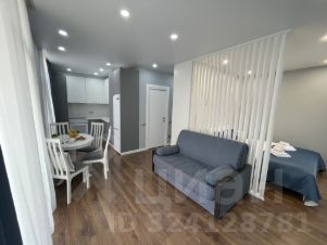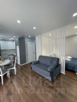 Квартира-студия 34м2, имеет отдельную зону спальни и кухни-гостиной, совмещенный сан-узел и вместительную гардеробную.