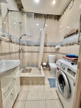 В квартире есть всё необходимое для комфортного проживания. Современный евроремонт, стильная мебель в комнате создают уютную атмосферу. Из техники в вашем распоряжении: кондиционер, холодильник, телевизор и стиральная машина. В ванной комнате установлена душевая кабина, что добавляет удобства вашему быту.