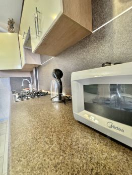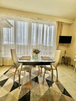 Квартира с евроремонтом, полностью готова для комфортного проживания. В обстановку входит мебель на кухне и в комнате, а также вся необходимая техника: кондиционер, холодильник, телевизор и стиральная машина. Ванная комната оснащена душевой кабиной, а совмещенный санузел добавляет удобства. Окна выходят на улицу, что обеспечивает хорошее естественное освещение.