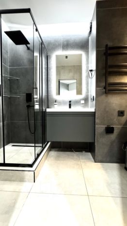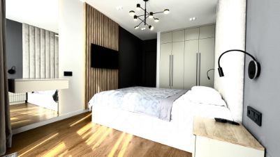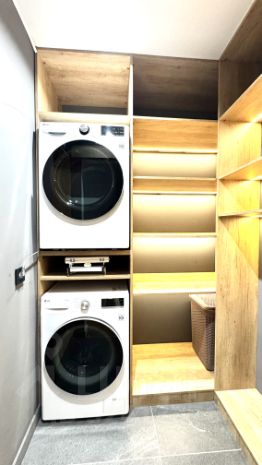 В квартире есть все необходимое для комфортного проживания: посудомоечная машина, духовой шкаф, встроенная микроволновая печь, индукционная плита, стиральная и сушильная машина, 2 телевизора.