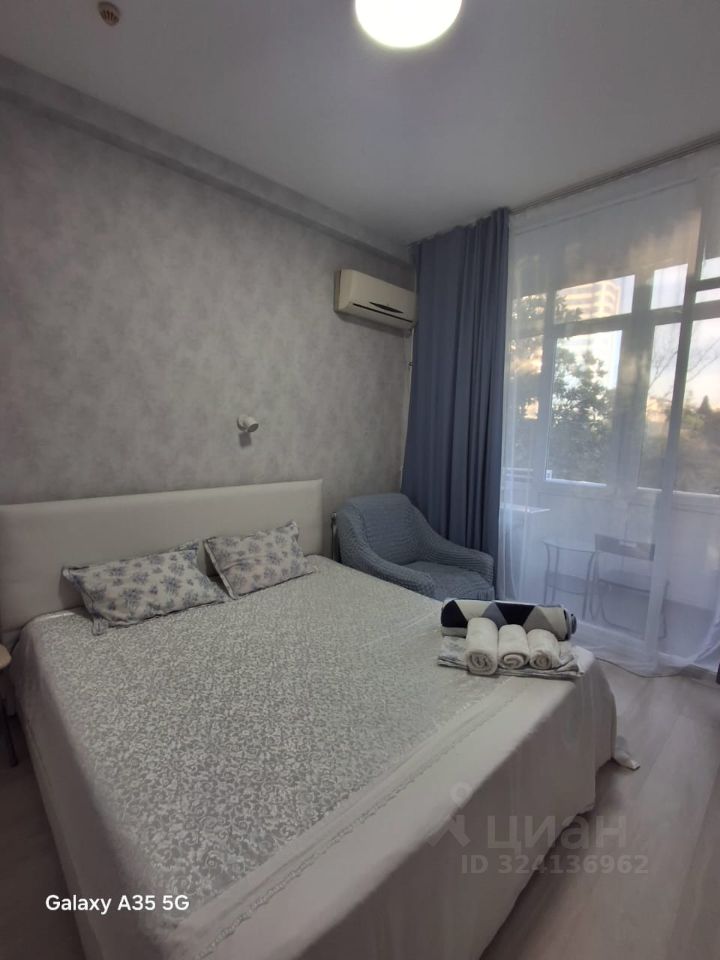 Студия с балконом в 3х минутах от Центральной набережной, . Удобнейшая локация: в 2х минутах находится остановка общественного транспорта. Вся необходимая инфраструктура в пешей доступности: супермаркеты"Перекресток", "Магнит", " Пятерочка", аптеки, столовые, кафе, парикмахерские, а также такие достопримечательности как Дендрарий, Цирк, Летний театр, парк Фрунзе, СПА Жемчужина с круглогодичным подогреваемым бассейном на открытом воздухе, СПА Бриз, СПА Эдем.