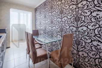 — Кухня: современный кухонный гарнитур, варочная панель, духовой шкаф, вытяжка, холодильник, электрический чайник, обеденный стол и стулья, выход на лоджию