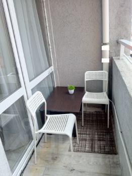 Общая площадь 23,5 кв.м. Квартира очень теплая и светлая, с балкона видно море)