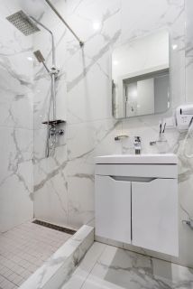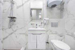 Ванная комната с душевой и водонагревателем на случай планового и аварийного отключения горячей воды (особенно актуально в летний сезон);