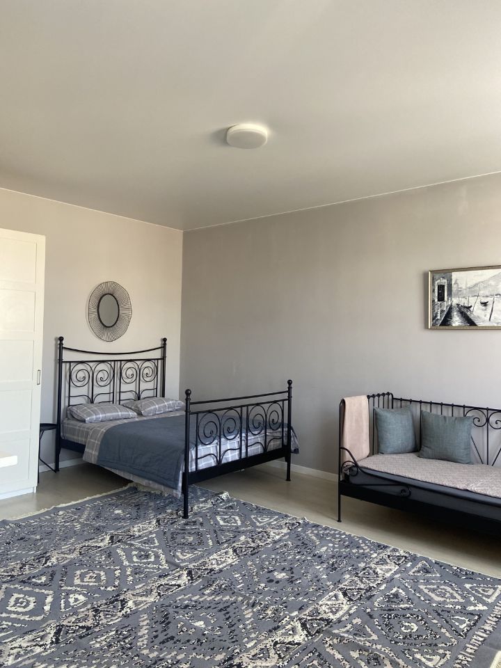 Двухспальная кровать (140 см) с ортопедическим матрасом Шкафы для хранения Оборудованная кухня ( укомплектованная всей необходимой посудой ) Чайник Холодильник