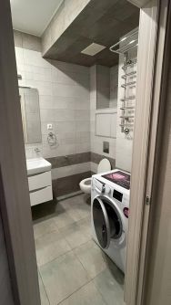 В квартире сделан качественный евроремонт. Есть вся необходимая мебель как на кухне, так и в комнате. Из техники — кондиционер, холодильник, телевизор и стиральная машина. Санузел совмещённый и оборудован современной сантехникой. Подключён интернет, поэтому всегда можно оставаться на связи.