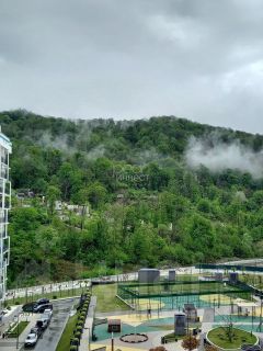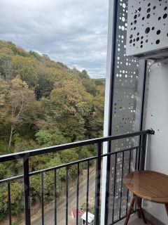 Просторный открытый балкон станет отличным местом для утреннего кофе или вечернего отдыха, откуда открывается шикарный вид на горы.