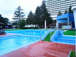 На красивой набережной в 300 метрах круглогодичный платный бассейн Гранд Отеля Жемчужина с теплой морской водой, сауной и спа- комплексом!