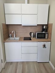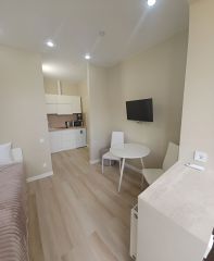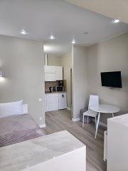 Площадь 22 кв. М, в студии комфортно могут разместиться до 3 человек.