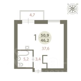 Собственник предлагает арендовать студию площадью 50,9 м², расположенную на ул. Парусная дом 11, в непосредственной близости от Имеретинской набережной.