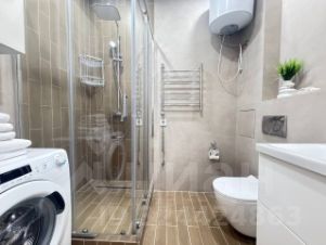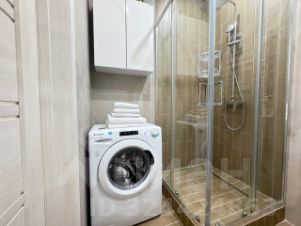 Совмещённый санузел с душевой кабиной, стиральной машиной, феном.