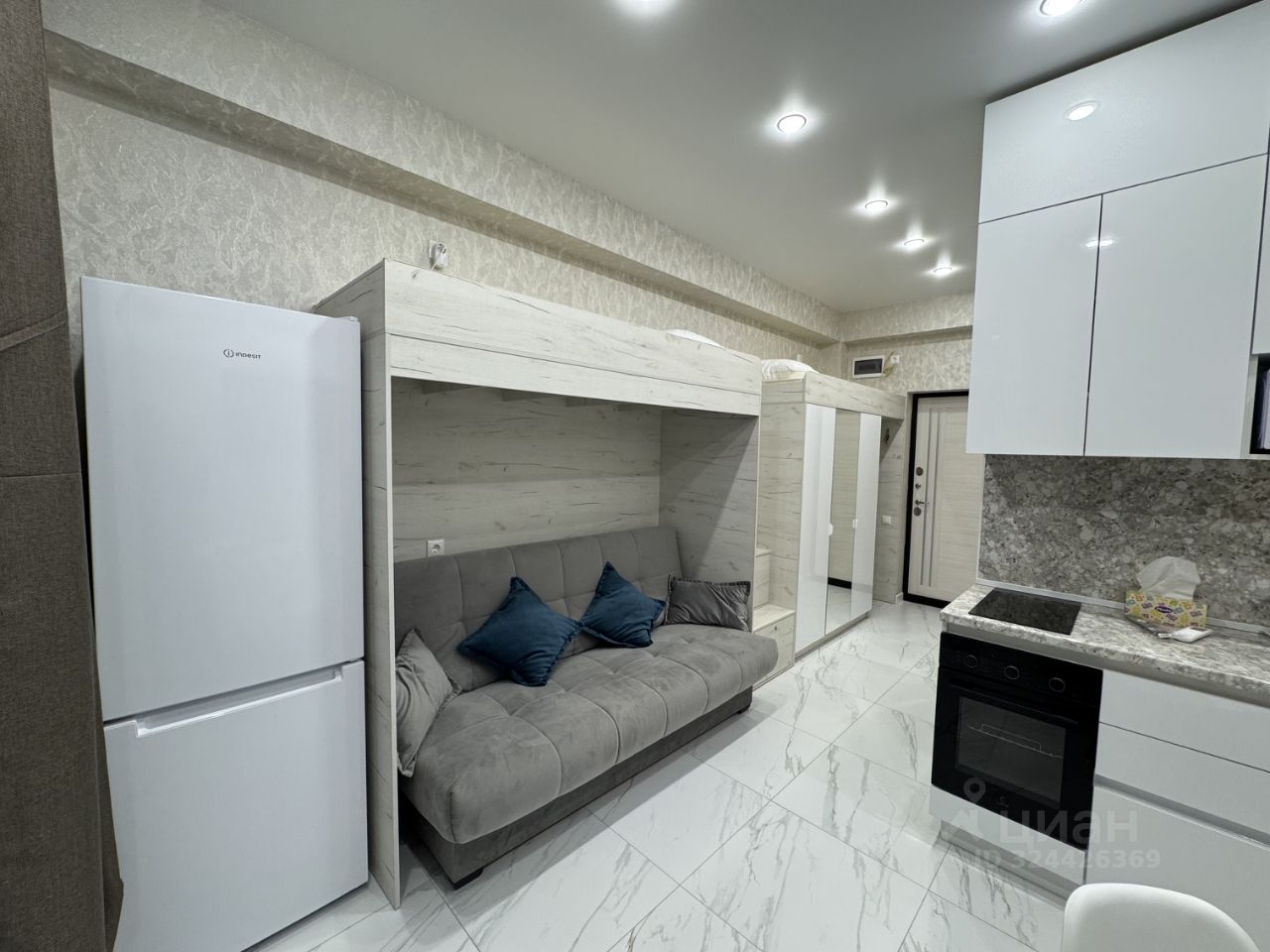 Предлагаем вашему вниманию стильную студию в аренду в жилом районе Лазаревское, по адресу: улица Калараша, 64/13к9, Сочи. Общая площадь квартиры составляет 22.3 кв. м, жилая 16 кв. м, кухня 3 кв. м. Квартира расположена на 9-м этаже девятиэтажного монолитного дома, построенного в 2021 году. Высота потолков 3 метра, что делает пространство более светлым и просторным.