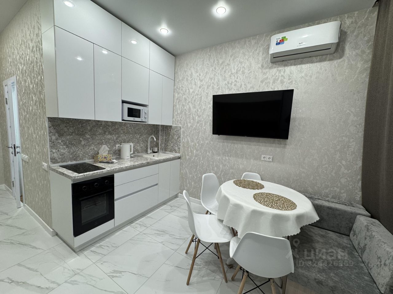 В квартире сделан дизайнерский ремонт, который подчеркивает современный стиль и комфорт. Просторная студия с объединенной зоной для отдыха и кухни, оборудованной всей необходимой мебелью. В ванной комнате установлена душевая кабина. Для вашего комфорта в квартире есть кондиционер, холодильник, телевизор и стиральная машина. Один балкон с видом во двор идеальное место для утреннего кофе или вечернего отдыха.