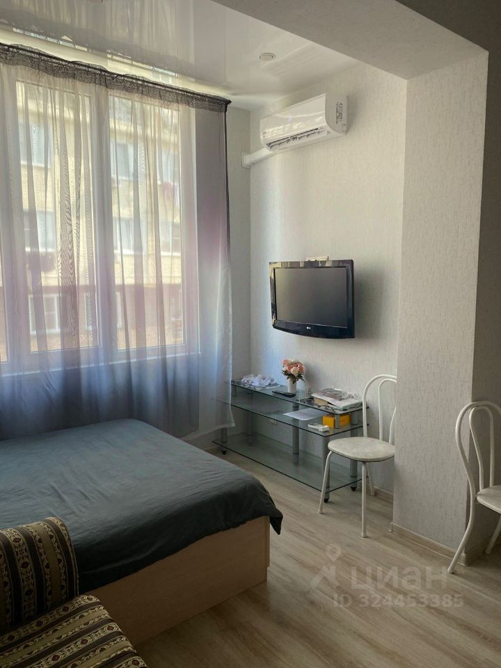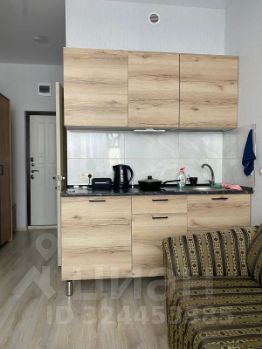 Уютная студия! Для проживания есть все (техника, 2-х спальная кровать, диванчик, кухонный гарнитур и т.д. и т.п.). Удобное месторасположение, рядом торговый центр, МФЦ, Пятерочка, остановки, все в 3 минутах ходьбы. Рядом дублер (если есть авто, то вообще классно).