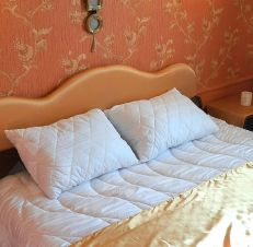 В спальне новый неиспользованный комплект постельных принадлежностей (одеяло, подушки, наматрасник)