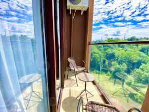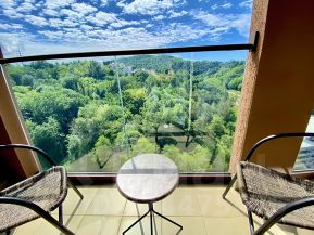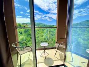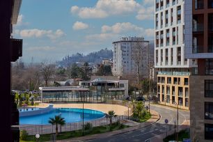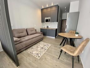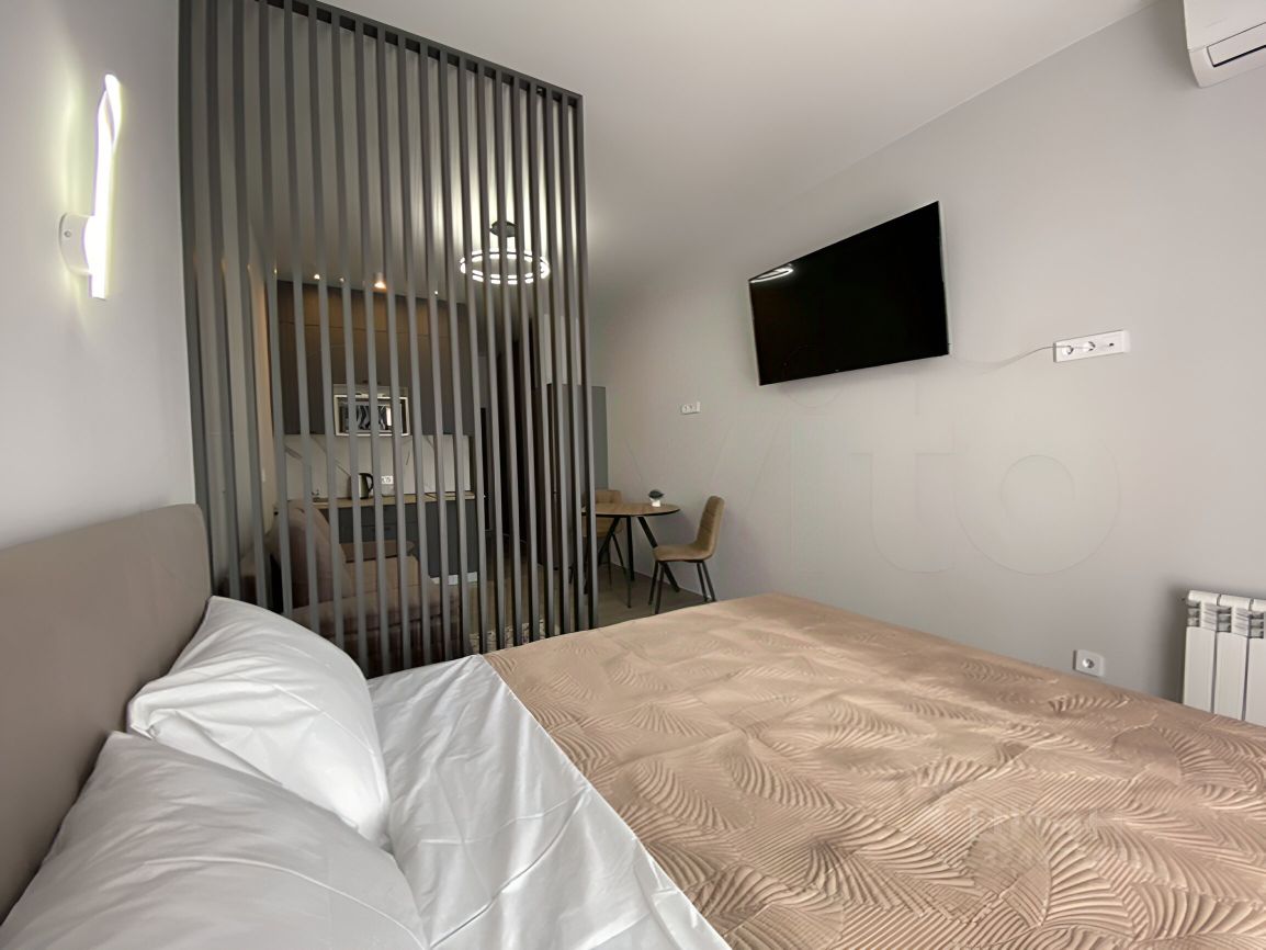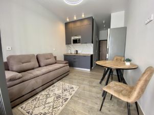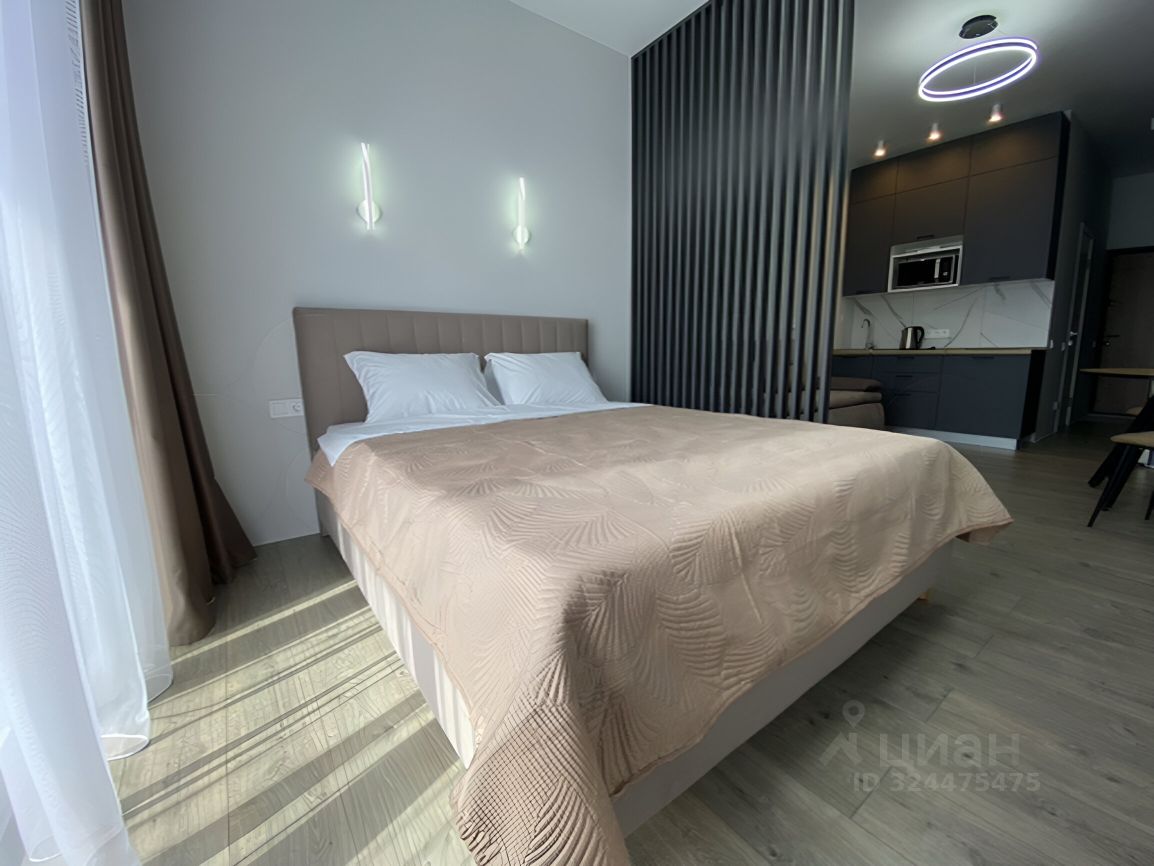 Квартира- студия в новом ЖК Аллея Парк с новым ремонтом, мебелью и техникой. С балкона открывается прекрасный вид на горы.