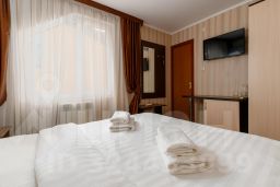 Небольшой (15 кв.м)номер с двухспальной кроватью ,без балкона . В ванной комнате имеется душ , необходимые гигиенические принадлежности, полотенца Безопасность в номере обеспечивает датчик угарного газа. Для удобства есть спутниковое TV, кондиционер, холодильник.