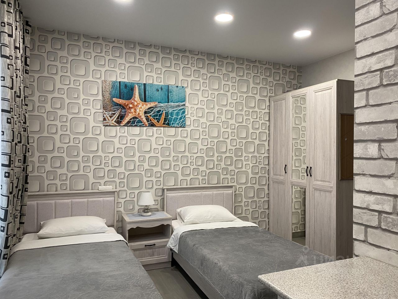 • спальные места: две односпальные кровати 90х200• кондиционер, телевизор, холодильник, индукционная плита, вытяжка, микроволновая печь, чайник, стиральная машина, фен, утюг