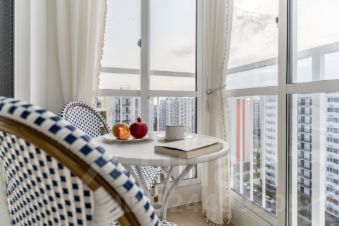 С балкона открывается вид на море и это место станет любимым на время отдыха, где можно помечтать с чашечкой кофе или чая.