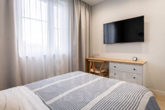 Квартира оснащена системой умный дом и множеством usb- розеток, проводным высокоскоростным интернетом, что позволит не отрываться от важных дел и провести он-лайн встречу за уютным рабочим местом.