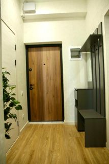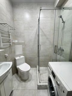 В квартире есть всё необходимое для комфортного проживания: новая мебель на кухне и в комнате, современная техника — кондиционер, холодильник, посудомоечная и стиральная машины, телевизор. Ванная комната оборудована душевой кабиной. Есть балкон, что позволяет наслаждаться свежим воздухом и видом на двор.