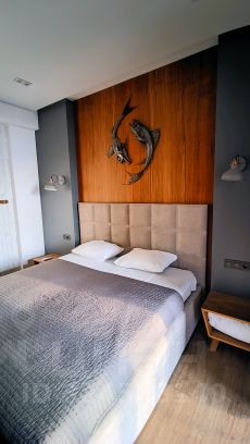 • Спальня 2 (проходная): Двуспальная откидная кровать с ортопедическим матрасом, встроенная в шкаф.