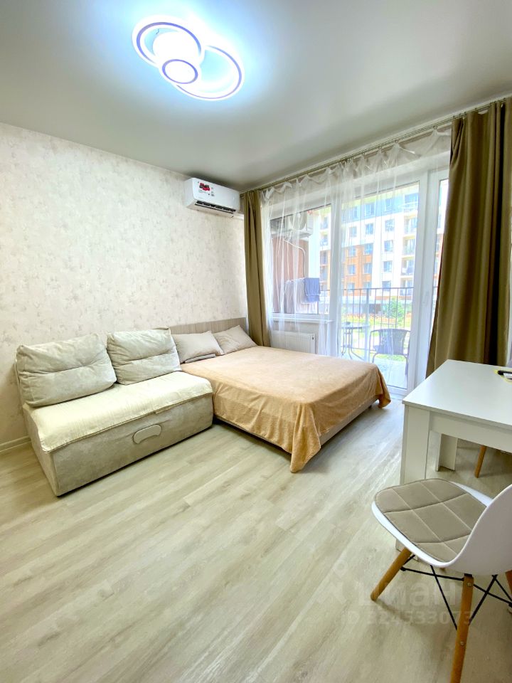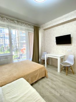 Сдается уютная студия в Дагомысе (первая береговая линия) до 1 июня 2026 года. До моря 3 минуты пешком. Широкая береговая линия, чистое море, множество кафе баров, игровых площадок. Есть все необходимое для жизни. Магазины, остановка в шаговой доступности. До центра Сочи 15 минут на Ласточке (станция рядом), на маршрутке 20-25 минут. Охраняемая территория, есть детская и спортивная площадки, уличные тренажеры. Квартира укомплектована всем необходимым для комфортного проживания. Мебель: кровать (140х200), диван кресло (90х200), обеденная зона, кухонная зона (оборудованная), стенка-гардеробная. Бытовая техника: чайник, микроволновка, варочная поверхность, кондиционер, стиральная машина, холодильник, wi-fi, телевизор с приставкой TV. Ванная комната: унитаз, раковина, душевая. Удобства: горячая/холодная вода, полотенца, постельное белье, посуда, гладильная доска, утюг, фен, сушилка для белья. Депозит возвратный (5000).