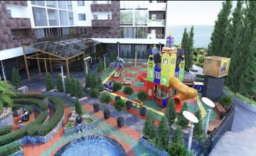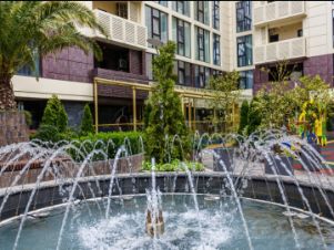 - Нижнюю платформу с подвесными качелями, свежим фонтаном, основной детской площадкой, а также зоной ожидания на улице и внутри зоны ресепшен. На всей территории ЖК высажены зелёные насаждения, приветствуется - эко и оздоровительный отдых.