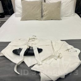 Для каждого гостя специально подготовлено белое постельное белье с полотенцами, халатом, комплектом для персональной гигиены