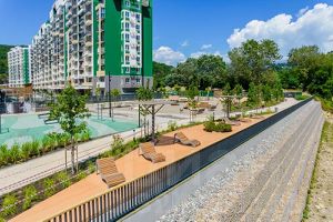 • В комплексе оборудованы множество детских площадок.