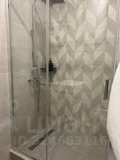 Ванная с душевой кабиной и средствами гигиены: гель, шампунь, ароматное мыло