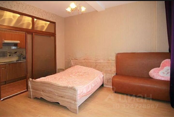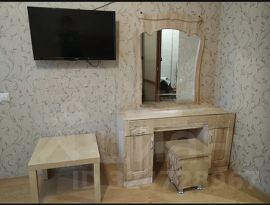 В комнатебольшая 2-х сп. Кровать(160х200), коктейльный диван (кожзам,не раскладывается),на кухне- СВЧ печь, холодильник, плита, духовка, чайник.