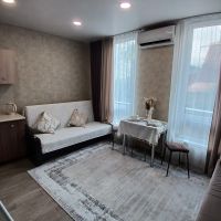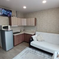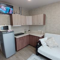В квартире Кондиционер, холодильник, телевизор, стиральная машина, водонагреватель ,варочная поверхность, вытяжка, сушилка для белья, гладильная доска, утюг, фен, мебель (раскладывающийся диван 2 шт, стол, стулья, шкаф для белья, тумбочка, кухня), постельные принадлежности, полотенца, средства гигиены, кухонная посуда.