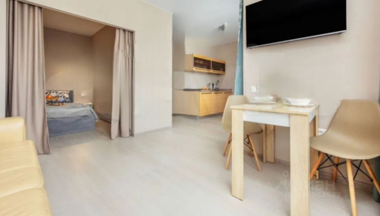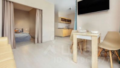 Просторная однокомнатная квартира студия с совмещённой кухней и гостиной. Спальная комната зонирована шторами. В квартире сделан ремонт по дизайн проекту. Расположение квартиры во двор с видом на горы, что позволяет избежать палящего солнца в окна в течение дня. Очень комфортный третий этаж позволит вам не тратить время на ожидание лифта. Квартира оснащена всем необходимым: диван-кровать, двуспальная кровать, обеденный стол, кухонный гарнитур.
