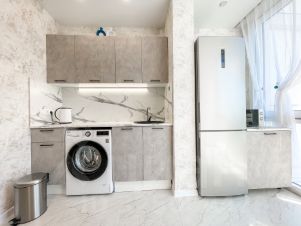 В квартире есть все необходимое для комфортного отдыха: wi-fi, смарт ТВ, кондиционер, вся необходимая посуда, фен, утюг, стиральная машинка, микроволновая печь, варочная панель, чистое постельное белье и полотенца. Из окна открывается вид на море и зеленую территорию. На территории комплекса находится магазин "Перекресток", "Пятерочка", кофейни, службы доставки, салон красоты, тренажерный зал.