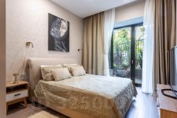 Апартаменты выполнены в современном стиле с продуманным зонированием. В спальной зоне — двуспальная кровать с удобным матрасом, в гостиной — раскладной диван, телевизор и уютная зона отдыха. Есть выход на просторную лоджию, где приятно провести время.