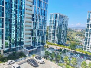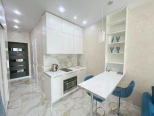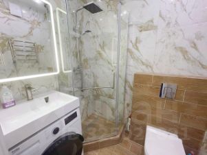 В квартире светлый ремонт, панорамные окна, есть кондиционер, оборудованная всем необходимым кухня и санузел с душевой, стиральная машина, электрический. полотенцесушитель,система "тёплый пол".