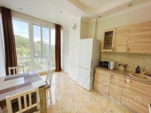 Евродвухкомнатная квартира (кухня-гостиная и изолированная спальня) в Центральном Сочи, популярный район Светлана, при этом тихое место. Отдельная спальня с двуспальной кроватью и кухня-гостиная с 2мя диванами.
