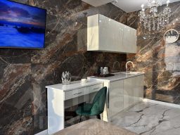 Каждый номер имеет свой уникальный интерьер. Вы будете поражены красотой и изысканностью нашего дизайнерского ремонта. Каждая деталь была продумана, чтобы создать атмосферу роскоши, уюта и комфорта, в которой Вы почувствуете себя как дома. Прекрасные виды на бескрайнее Черное море прямо из своей собственной террасы, чтобы наслаждаться звуками прибоя.