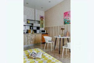 современная студия с продуманным дизайном и всем необходимым для проживания,